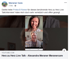 Ein Herz zu Herz Talk der Extraklasse: Alexandra Meraner in all ihrer Authentizität und all ihren Emotionen des gegenwärtigen Alltags. Ich liebe solche Gespräche, wenn ich merke, dass die Worte direkt aus dem Herzen kommen. Danke Alexandra Meraner von Meraner Care für deine Worte.
