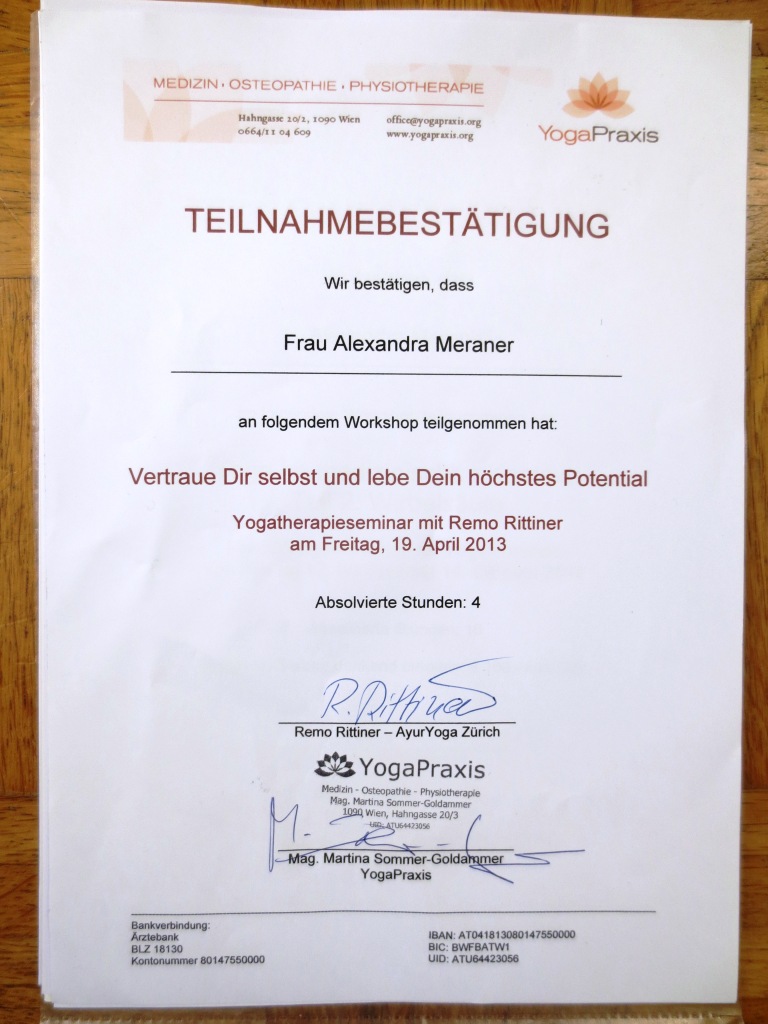 - Leitung verschiedener Natural Yoga – Meraner Care Naturally Workshops in Wien und Gastein