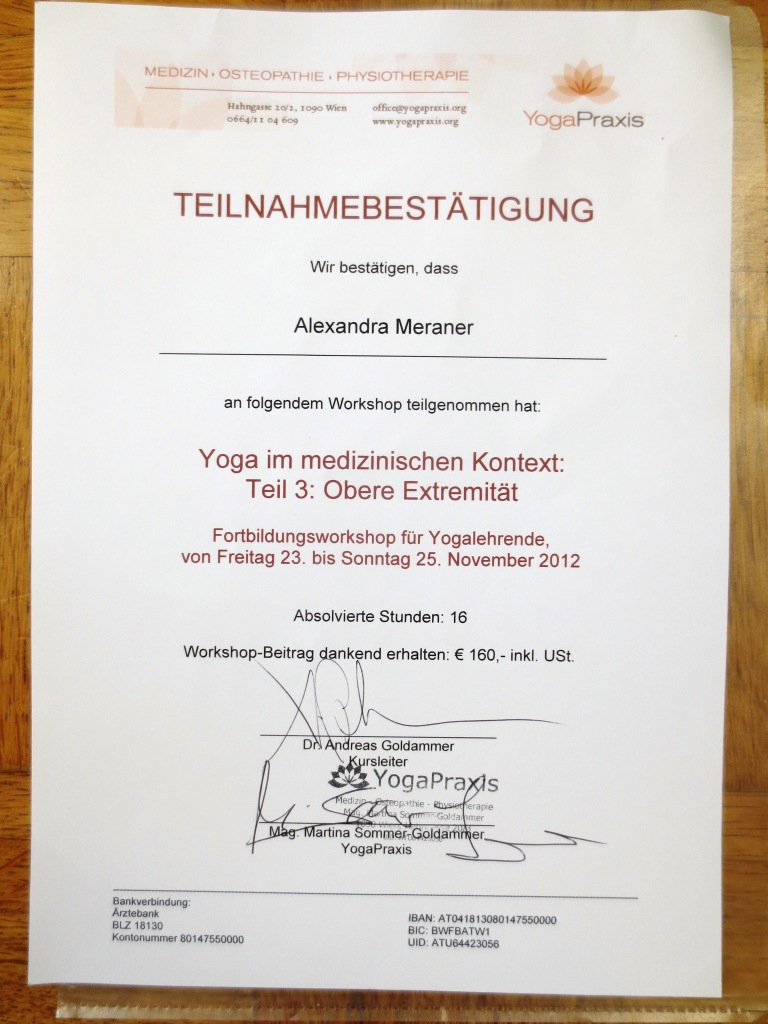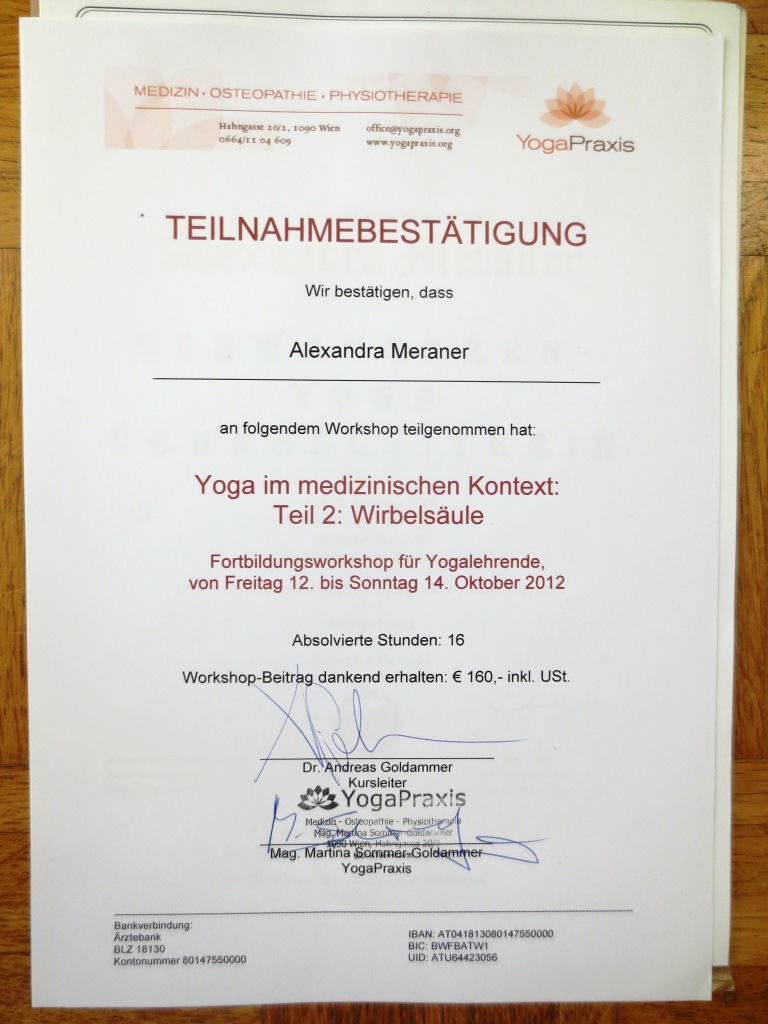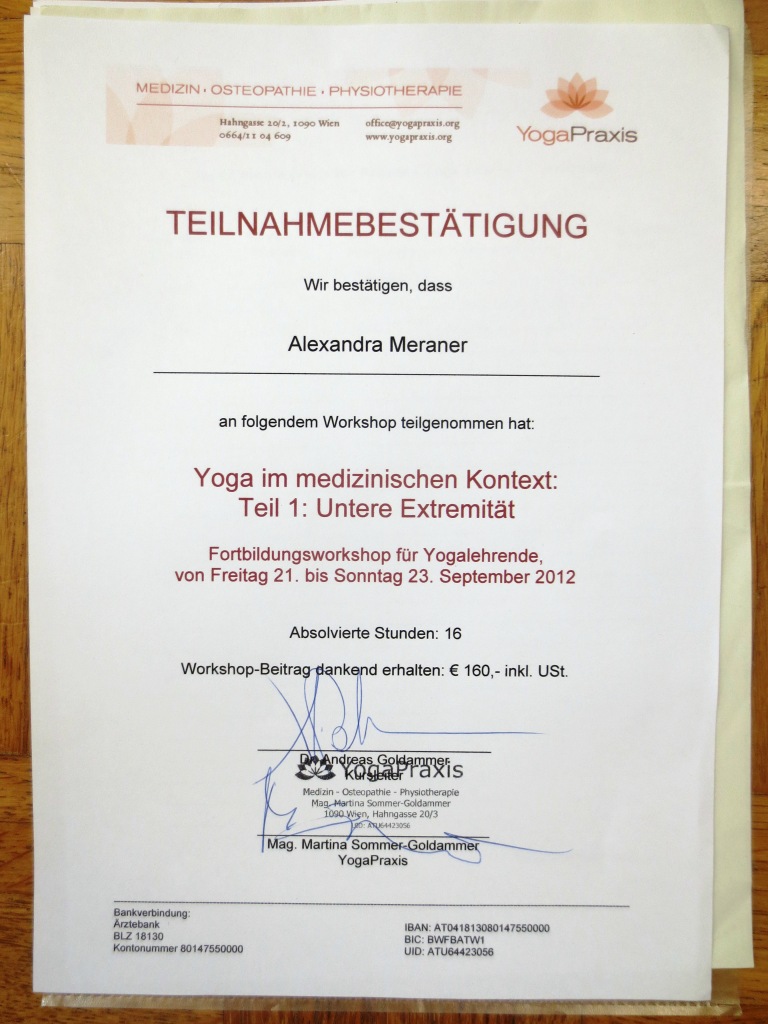 – Beginn eigener Gesundheitsyoga Weiterbildungen in Österreich und Deutschland