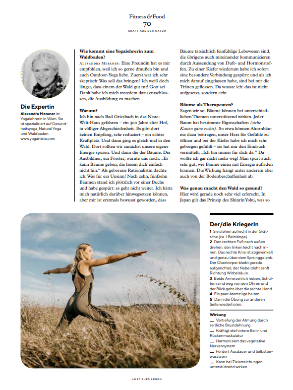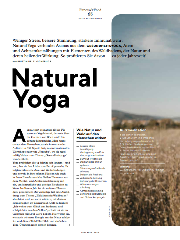 Natural Yoga verbindet therapeutische und Gesundheitsyoga-, Atem- und Achtsamkeitsübungen und Elemente des Waldbadens und der Waldtherapie mit der Natur, sowie deren wunderbarer Wirkung!